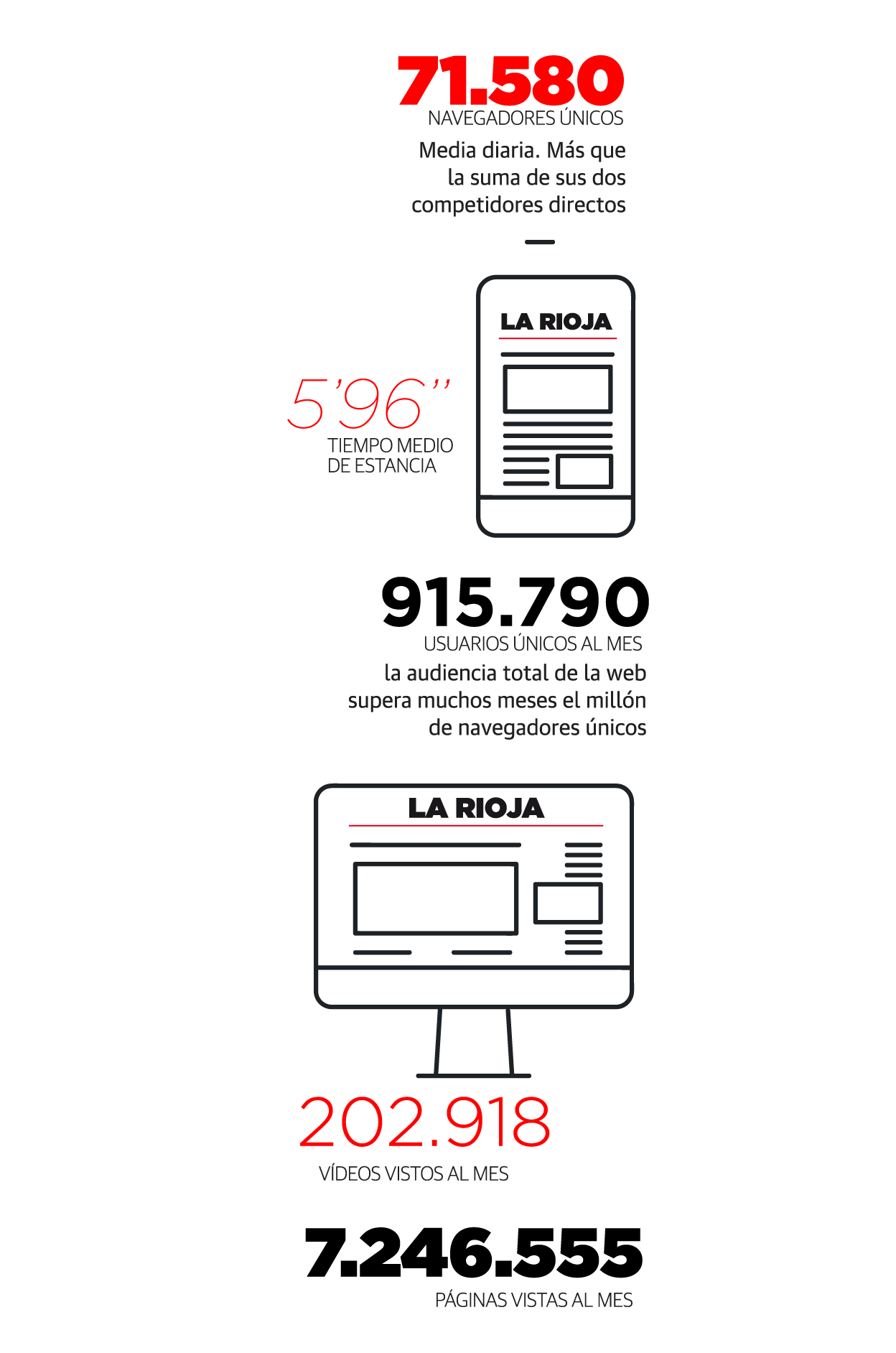 Pero, como queda dicho, el papel se ha visto sustituido en la preferencia de la mayoría de los lectores por el recién llegado internet. Ya no tan recién, en realidad: la edición digital de Diario LA RIOJA tiene 26 años. Y es desde su necimiento el medio más leído de la comunidad.