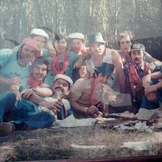 Se trata de un grupo de amigos de Arenzana de Abajo retratado en las choperas durante las fiestas de 1976. Comiendo en el suelo, como era habitual, aparecen Fonso, Teodoro, Rubén, Felipe, Aurelio, Paulino, Miguel, Gullermo, Carmelo, Paco y Ángel.