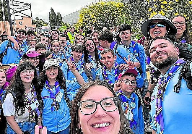 Ante el coro que dice «Campamentos de sueños, de amistad y de unión. Bajo el calor de este fuego late nuestra pasión», mil doscientos chavales de entre 6 y 21 años de toda España vistieron camisa azul y pañoleta en el que es el mayor evento anual scout. Y también un buen puñado de familiares que acompañaron a los alfareños en el autobús fletado y en varios coches hacia la ciudad murciana.