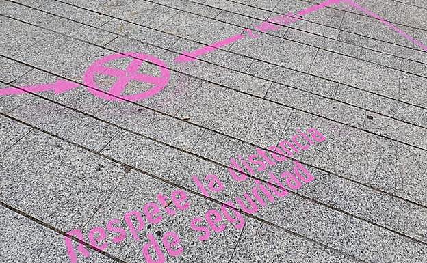 El Ayuntamiento ha pintado en varias zonas círculos con un radio de dos metros para visibilizar y acostumbrar a la población a mantener la distancia de seguridad