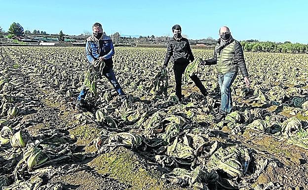 Como esta hay muchísimas más por toda la ribera. De alcachofas, de cardo, vides, perales... Cultivos sobre todo de hortalizas de invierno a los que literalmente se ha tragado el agua. El desastre de la avenida se puede ver ahora en toda su magnitud. En un principio se habló de 500 hectáreas de superficie de cultivos afectados, pero oficialmente, todavía no se han dado datos sobre terrenos, agricultores e infraestructuras de riego dañadas. «Nada más producirse los hechos la Consejería de Agricultura dijo que estaba haciendo una evaluación de los daños con sus técnicos y de momento, no se ha dado ninguna reunión ni ninguna información al respecto», lamentaba Igor Fonseca, de Asaja, que a su vez critica la «inacción» de las administraciones de cara a la reparaciones de la mota de defensa y la articulación de ayudas económicas a los afectados.
