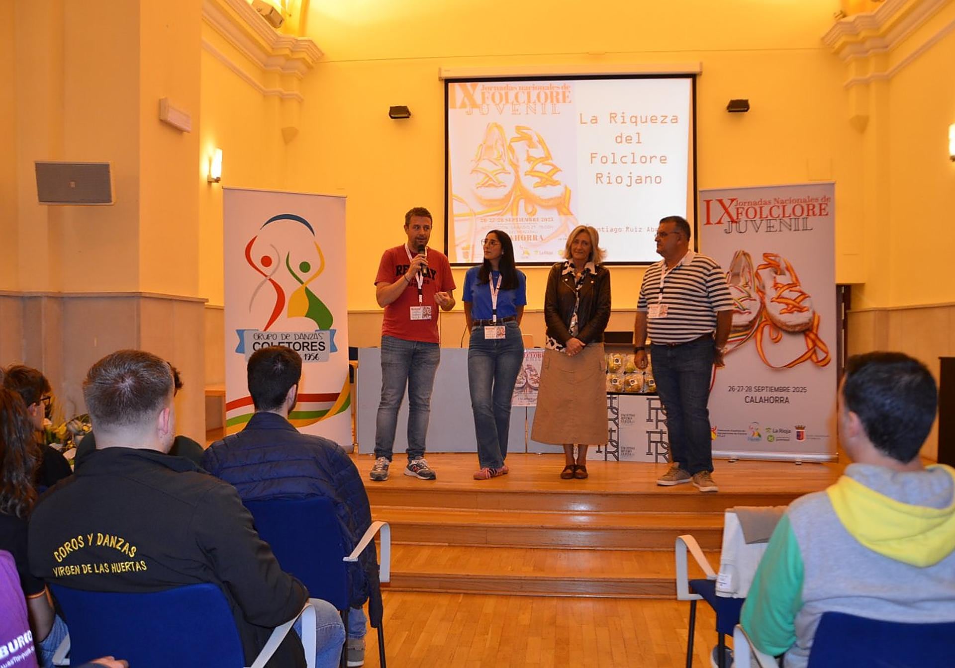 A los danzadores los recibió también el gaitero y folklorista riojano Santiago Ruiz Abeytua, quien ofreció una conferencia sobre 'El folklore de España'.
