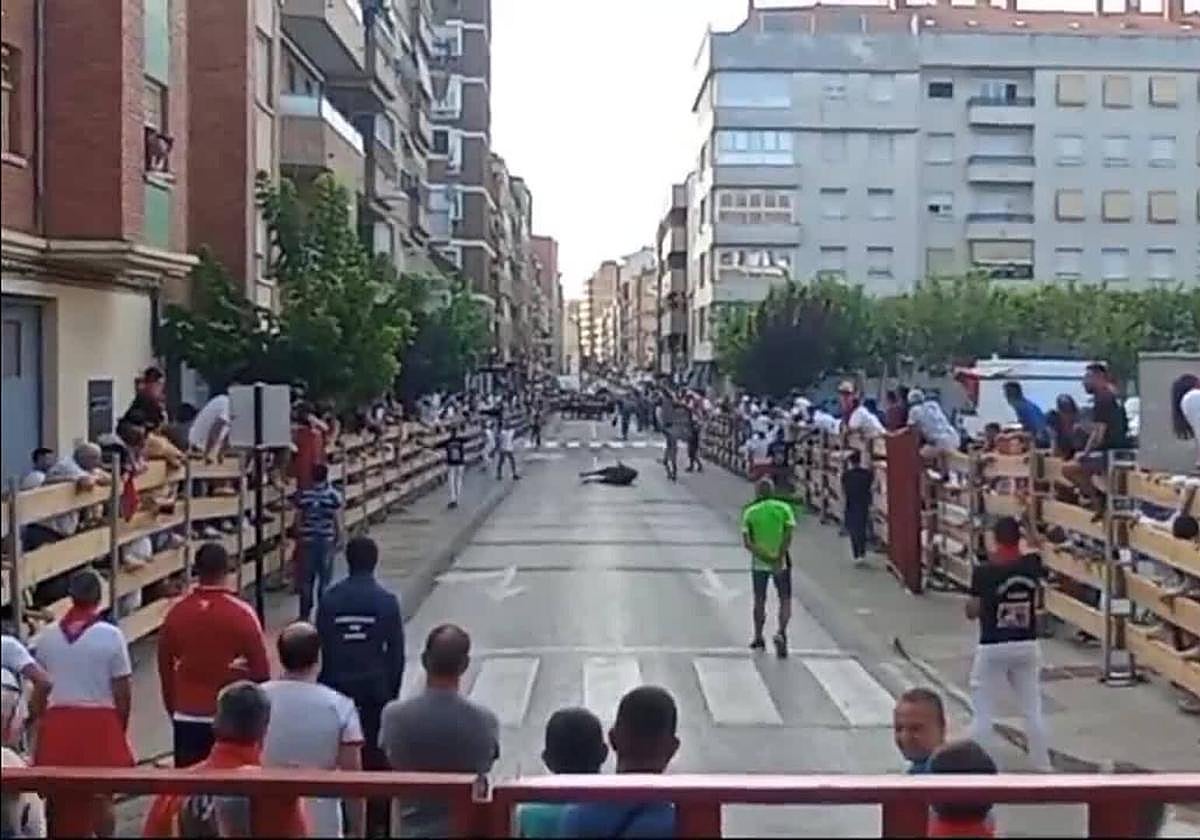 Vídeo: una vaca por los suelos en el encierro de Calahorra