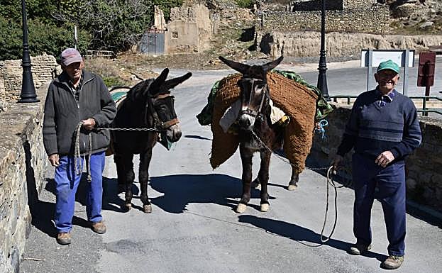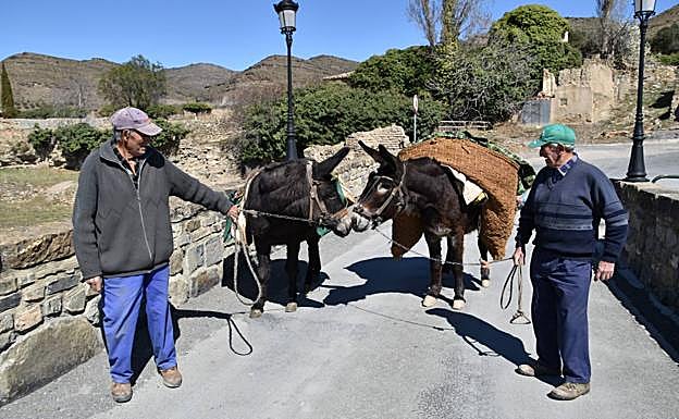 El otro día salía de Igea hacia Grávalos y en el puente medieval, sobre el río Linares, se cruzaron dos vecinos con sus asnos. Jesús 'Moreno' regresaba al pueblo con su burra y José 'Sixto' iba a una huerta a echar estiércol que transportaba en el serón con su burro. Encontrarse con un equino resulta curioso, con dos ocupando la vía a la entrada del puente es algo llamativo, único, que traslada a uno a otra época, de blanco y negro.