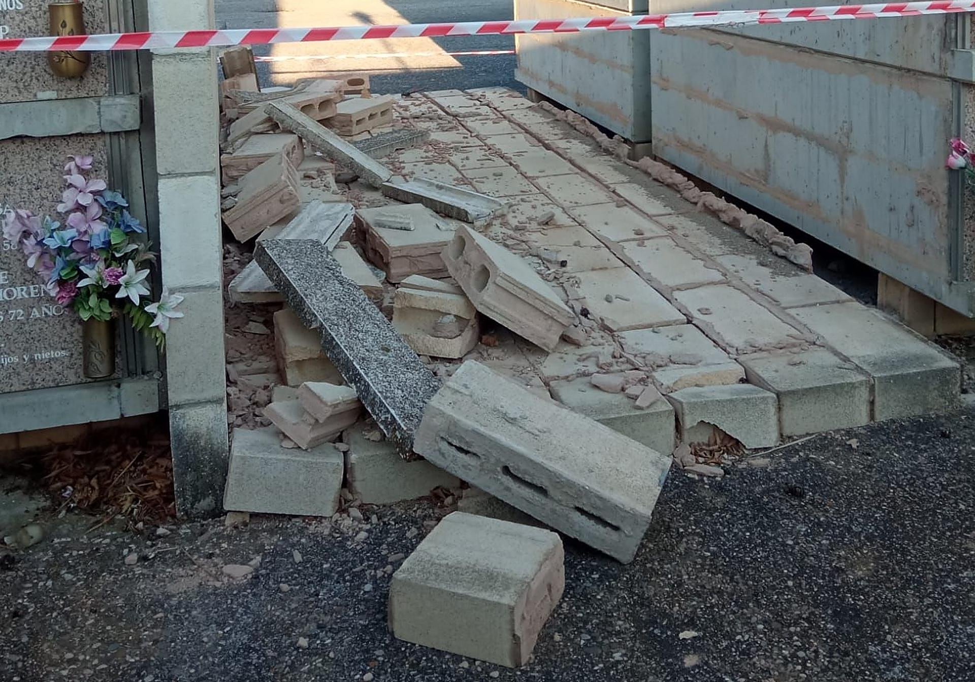 Desde hace varios días el muro de entrada al cementerio de Alberite permanece parcialmente derruido, así como una de las paredes de los nichos ... del interior. Los derrumbes se han producido sin que se conozca con certeza la causa, si ha sido fruto de un accidente o por un fenómeno meteorológico. De momento se ha colocado una cinta para evitar el paso por la calle en la que se ha producido uno de los derrumbes y se ha retirado parte de los escombros. Los desperfectos en tan sensible espacio han motivado la curiosidad de los vecinos, que se han acercado al camposanto para comprobar lo sucedido.