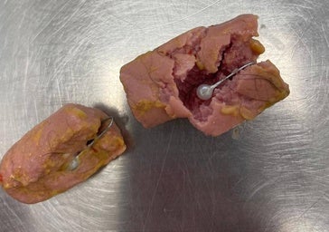 «En la mañana del domingo, paseando por la zona de siempre, el perro estaba agitado y encontré que había varias salchichas. Yo intenté quitarle una, pero ya era tarde. Avisé a la Policía y me sorprendió que no era la primera vez que las encontraban en la zona», cuenta Nicole, la dueña de Pistacho, un setter inglés de 3 años. En el veterinario, provocando el vómito al animal, consiguieron que el perro expulsara dos trozos y con una endoscopia extrajeron la tercera salchicha con alfileres que en realidad había ingerido Pistacho. «Afortunadamente, llegamos a tiempo y el perro está bien, pero me gustaría que el caso se difundiera para que esto no vuelva a suceder», advierte Nicole. Porque los agentes reunieron unos quince trozos de salchicha con alfileres doblados dentro. «Y menos mal que se las comió enteras porque las llega a masticar y no sé qué le hubiera podido pasar...», teme.