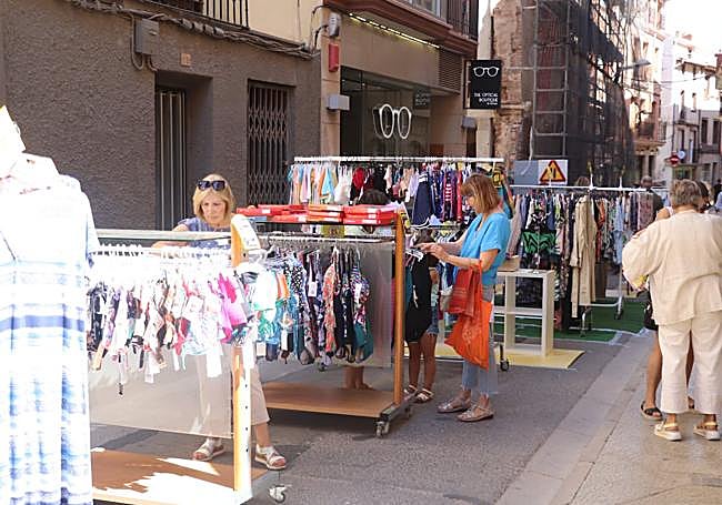 La segunda edición del Alfastock de Verano está transcurriendo con la enorme aceptación de los vecinos. Desde el jueves, veinte establecimientos de la Asociación de Comerciantes de Alfaro (Adeca) participan en esta feria del stockaje, por la que sacan sus productos hasta esta mañana a las calles y ofrecen descuentos por la tarde en su interior. Informa Ernesto Pascual