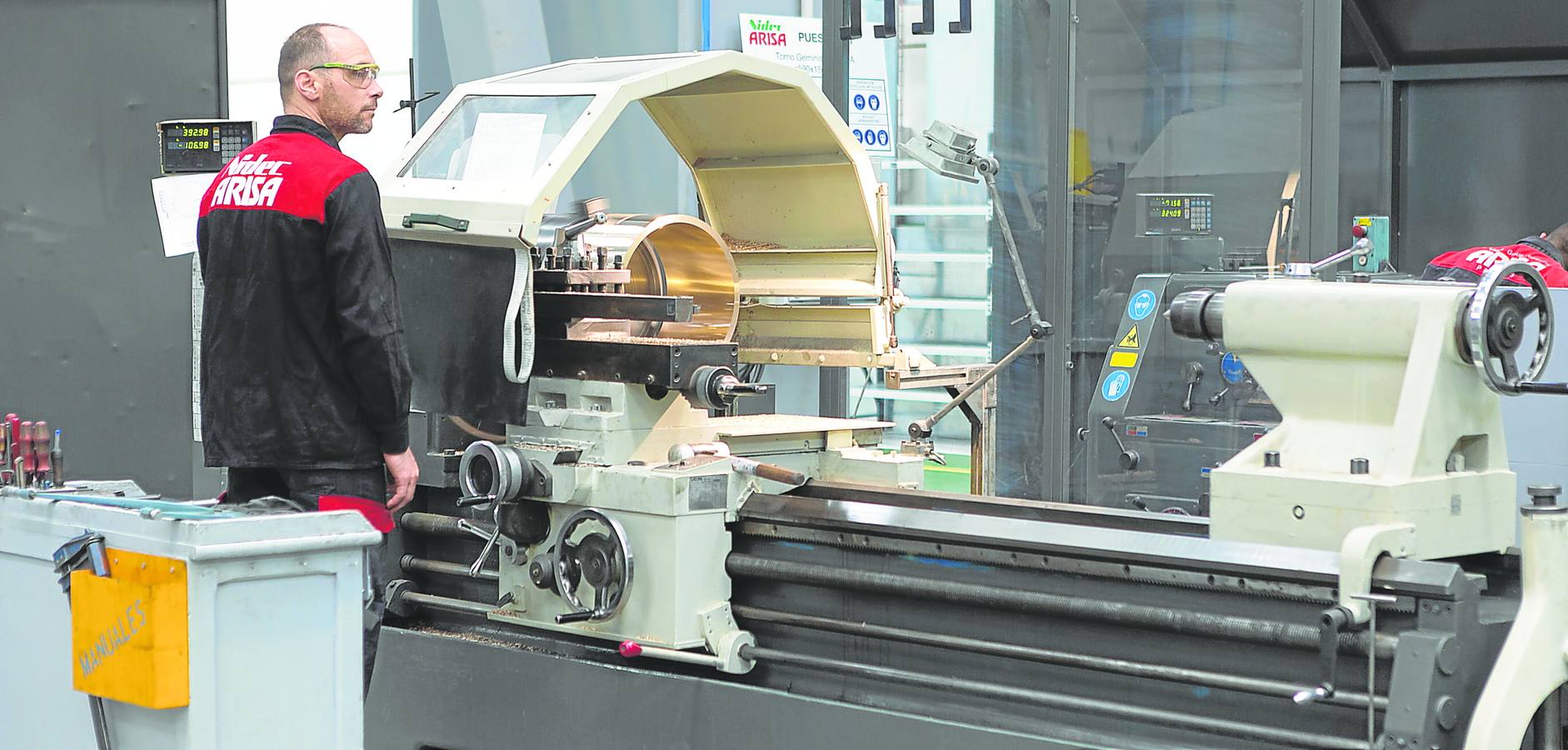 Un operario, en una de las máquinas de la firma Nidec Arisa, en las instalaciones del Polígono de Lentiscares en Navarrete.