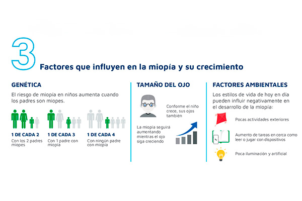 Conocer los antecedentes de salud visual de la familia y realizar revisiones regulares es imprescindible para diagnosticar la miopía y seguir su avance. Hoy en día existen tratamientos y productos para que, una vez detectada la miopía se pueda ralentizar su crecimiento lo máximo posible, y así prevenir la aparición de enfermedades. Por ello la detección a tiempo es crucial y la vuelta al cole es un buen momento para ver estos síntomas de mala visión en los más pequeños.