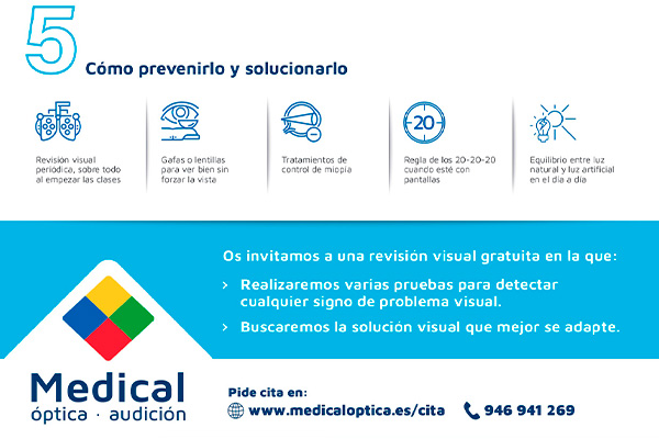 En estas revisiones les realizaremos pruebas que nos ayuden a detectar cualquier signo de problema y así poder ponernos en marcha para mejorarlo. Pide cita en medicaloptica.es o en 946 94 12 69 y haz que el inicio del curso sea un éxito. ¡Te esperamos!