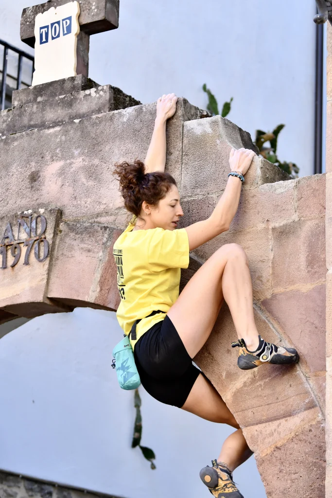 Trepar el Patrimonio, la original propuesta de la Copa de Escalada Urbana. En la imagen, una competidora en la prueba de 2024,