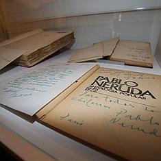 En once vitrinas, cada una dedicada a un autor, se pueden admirar primeras ediciones de las obras de los escritores como, por ejemplo, la ópera prima de Pablo Neruda 'Crepusculario' o a su lado 'El rayo que no cesa', de Miguel Hernández, dedicada por el mismo a Neruda: «A mi admirado y querido Pablo Neruda, en espera de no sentirme tan distante y en pago de tanto que le debo, Miguel Hernández, un amigo». Única, tanto por las palabras, como por haber sido recuperada por Hernández tras el bombardeo de la casa de Neruda en Madrid. Aquel día también rescató para nuestros ojos 'La destrucción o el amor'. En la muestra, está entre los objetos de Vicente Aleixandre y en ella puede leerse: «A Pablo Neruda, con un cariño muy grande, cerca, cerca».