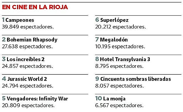 Su título fue premonitorio. 'Campeones' se ha encaramado al pódium de la cartelera riojana logrando el trofeo de la película más vista en nuestra comunidad durante el pasado año. Contabilizó 39.849 espectadores, mientras que en el conjunto de país la vieron 3,2 millones de personas (ocupa el quinto puesto).