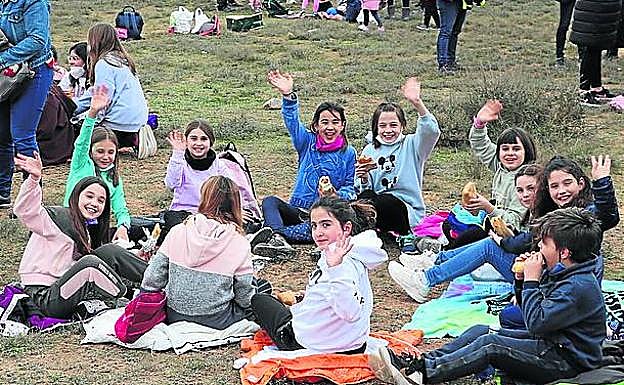 Después de un año sin poder compartirla, cientos de alfareños de todas las edades han celebrado el Jueves de Lardero cumpliendo la tradición: subir en cuadrilla al monte La Plana por la tarde para degustar la culeca, el bollo preñado de chorizo y huevo cocidos.