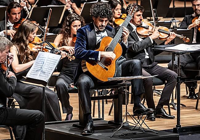 Solo una vez que hubo concluido su actuación junto a la ADDA Simfònica, el guitarrista Pablo Sainz-Villegas ha reconocido ante los espectadores que esta tarde llenaban el Auditorio de Riojafórum que a punto había estado de suspender el concierto, el primero en su carrera. Una lesión en la mano como consecuencia de un accidente con la bicicleta le ha obligado a tocar medicado y saltándose el reposo recomendado. Su pasión por la música y el modo en el que se ha visto arropado por la ADDA -orquesta residente del Auditorio de la Diputación de Alicante- y por el calor de su gente le han animado a seguir adelante y a merecer una cerrada ovación por parte del público. Un público a quien, si bien no pudo regalarle la clásica Jota de Logroño con la que suele cerrar sus conciertos en la capital riojana, sí le brindó el Romance Anónimo.