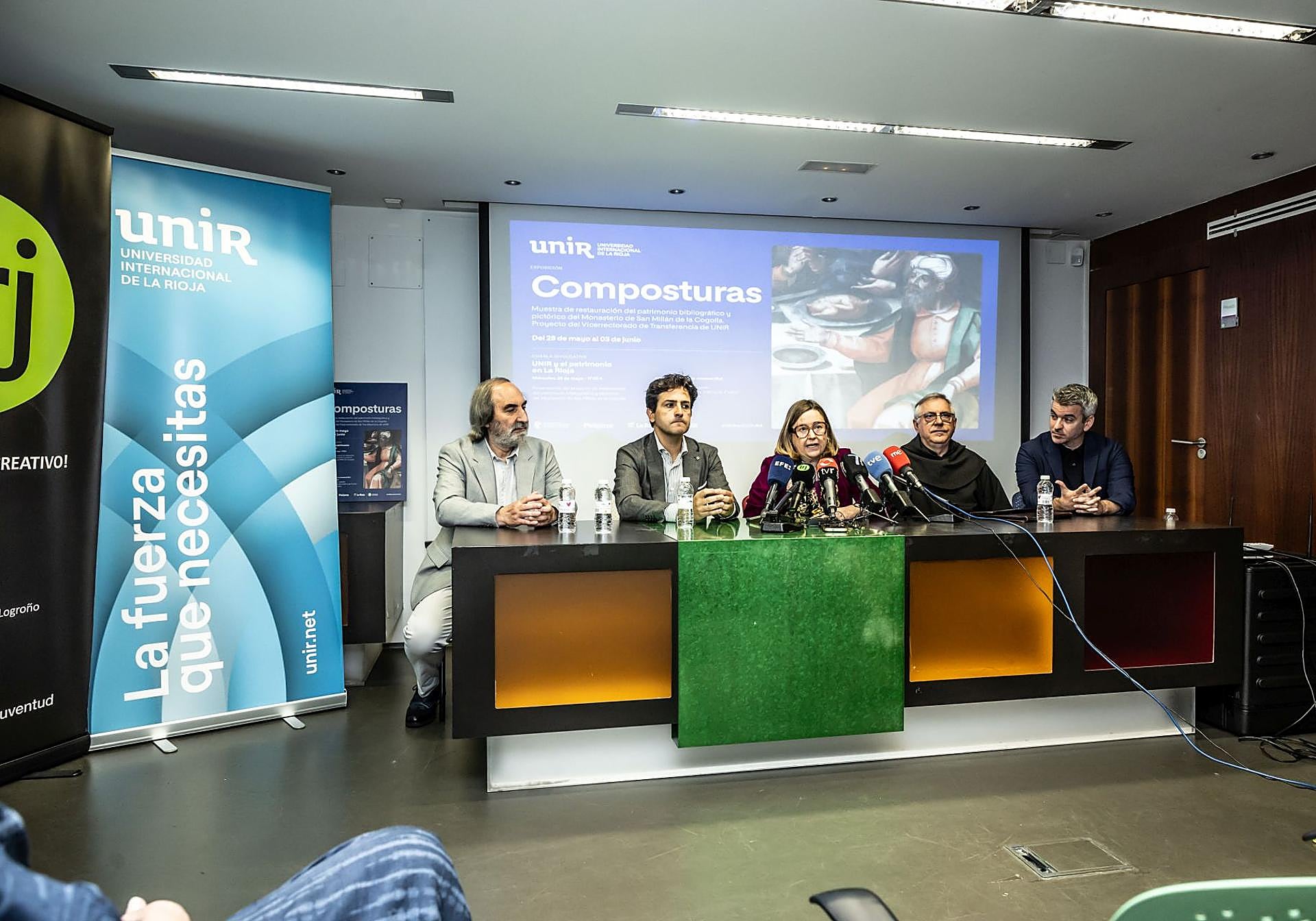 'Composturas' da título a la exposición que acaba de inaugurarse en la sede del Instituto Riojano de la Juventud (IRJ) y que reúne seis libros y un lienzo procedentes del Monasterio de San Millán de la Cogolla, un valioso patrimonio recién restaurado gracias al proyecto del Vicerrectorado de Transferencias de UNIR.