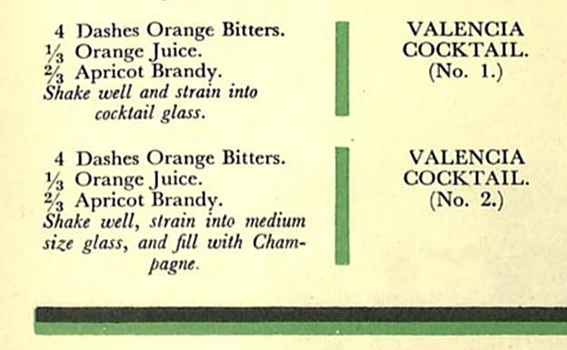 Receta del Valencia Cocktail en 1927 'Barflies & Cocktails'