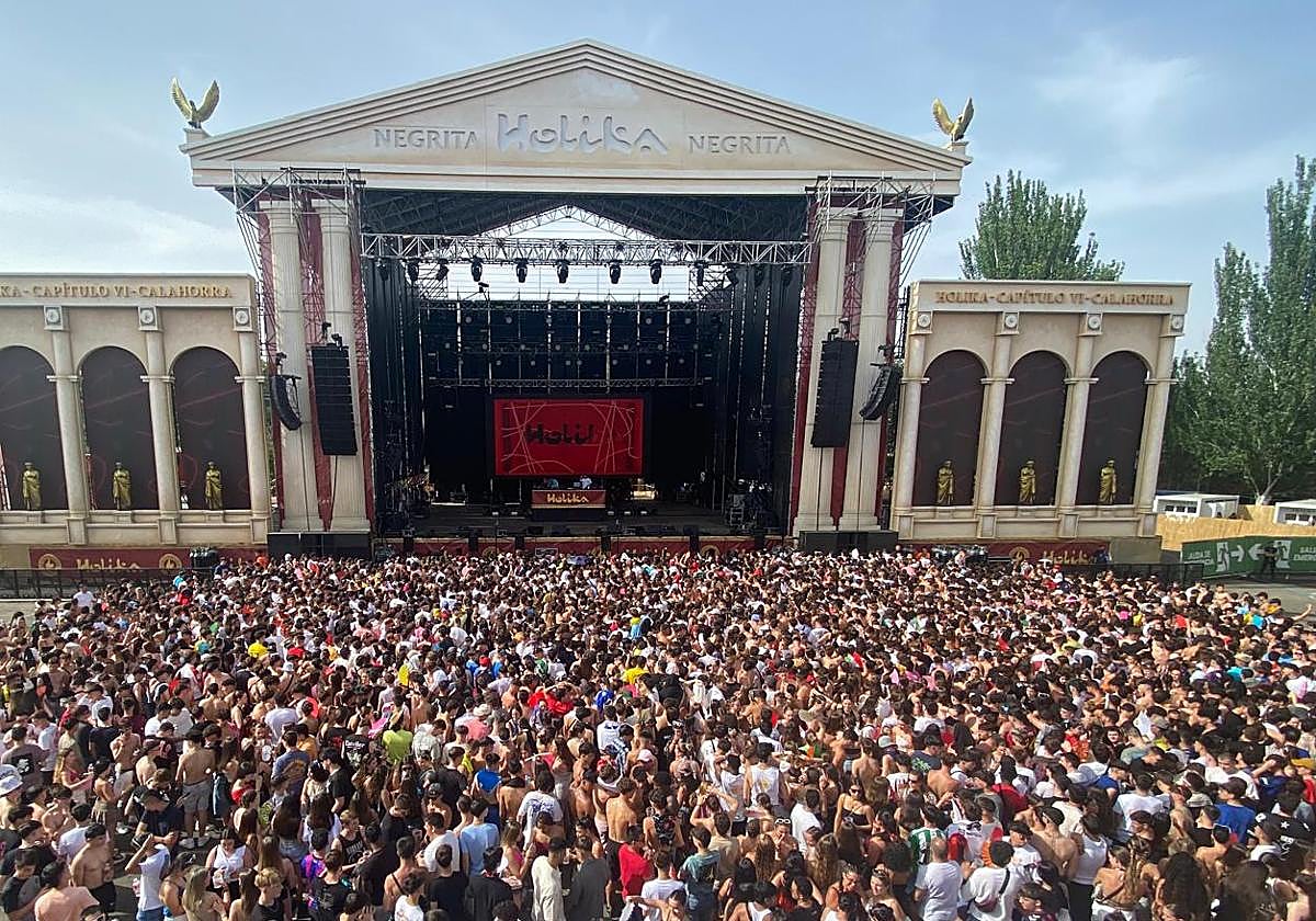 Estaba entre las principales apuestas de los 'holikers' para inaugurar el festival y una vez más la han clavado. Raul Clyde, una de las promesas del reguetón español, inauguró a las seis de la tarde el Holika de Calahorra. Lo sentimos por los que tenían claro que sería Omar Montes y por los que incluso soñaron con Rauw Alejando o Bad Bunny. Aunque todo se andará, porque Holika es ya otro nivel y nunca se ha puesto límites. «Gracias a los que han venido sin saber quién era», decía Raul Clyde después de su primer tema, con camiseta, bermudas y gafas de sol. Es decir, el habitual 'outfit' de un festival de música urbana y que a las cuatro y media de la tarde de este jueves contaba con largas filas en el entorno de la catedral para acceder al recinto.