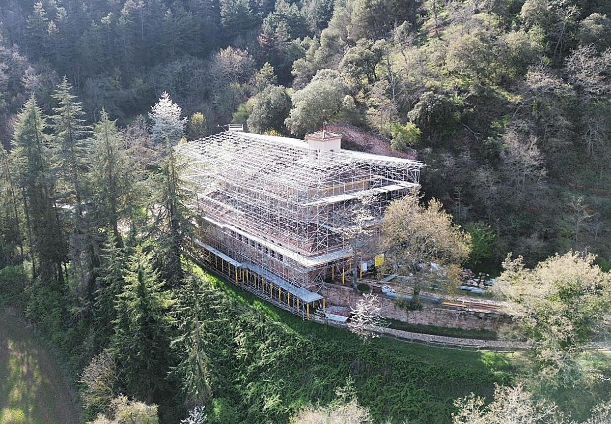 El aspecto del monasterio antes de la colocación de los andamios en una foto aérea.