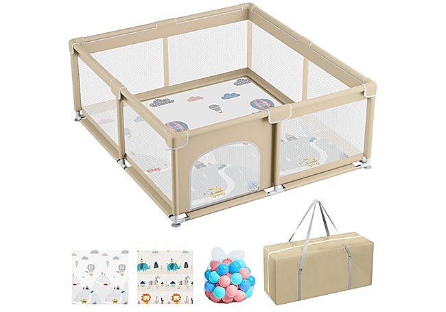 Con estructura metálica estable y malla transpirable, el parque infantil plegable HUBORNS de 120x120 cm proporciona un espacio seguro y bien ventilado para el juego. El sistema modular facilita el montaje y desmontaje, permitiendo almacenarlo fácilmente. Su diseño sin bordes afilados y materiales resistentes ofrecen tranquilidad y protección durante las actividades diarias del bebé.