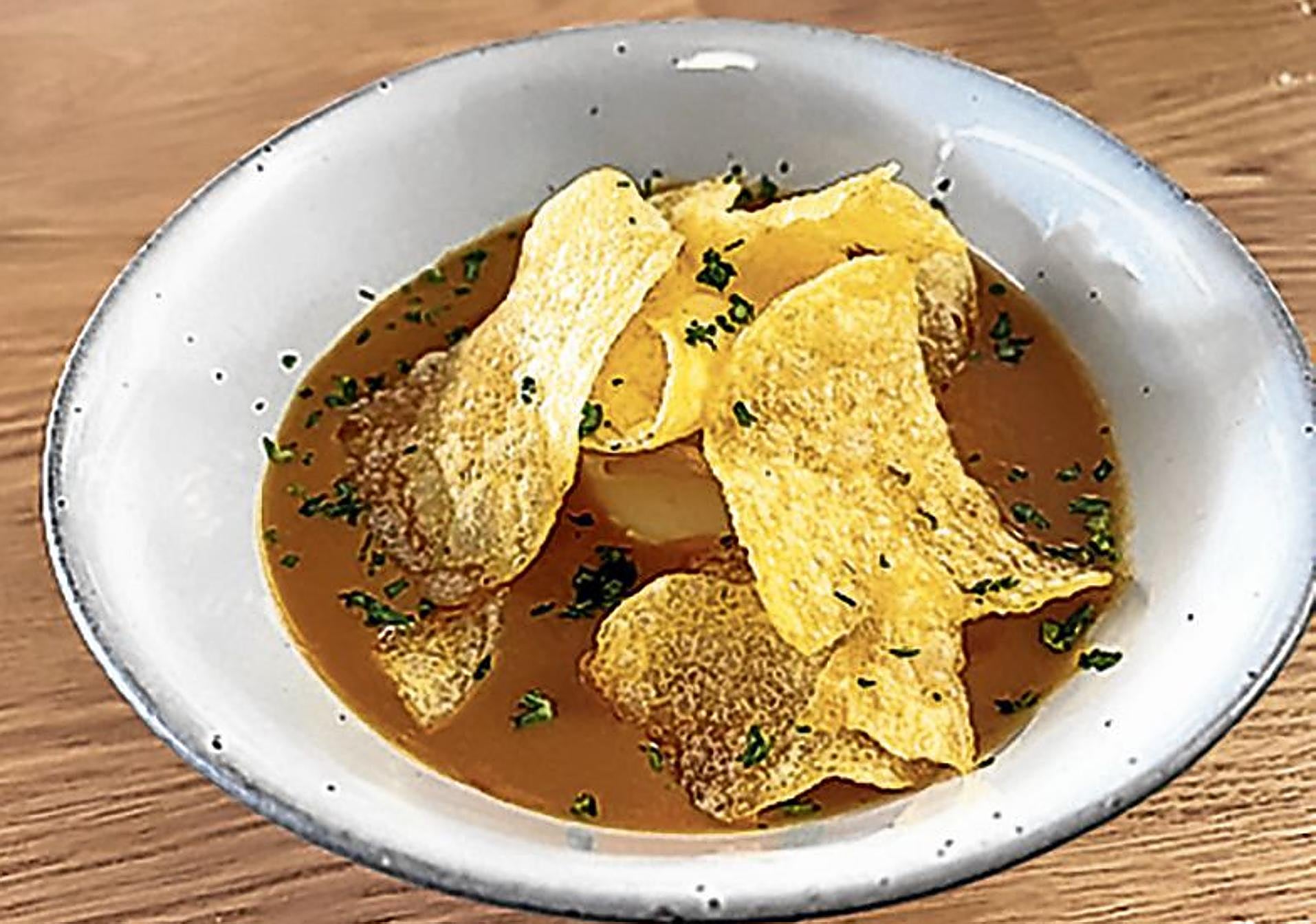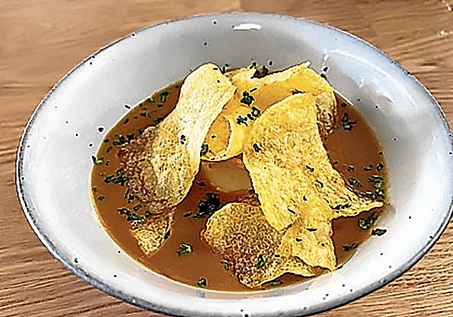 Jairo le saca chispas a lo más sencillo a base de paciencia y buena mano. Cognac, vino blanco, Oporto y horas de caramelizar la cebolla convierten la ración de champis en un estofado goloso y profundo. Su versión de las patatas a la riojana mantiene el carácter de la receta típica, pero aporta diversión con unas chips y un huevo a baja temperatura.