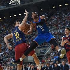 Oklahoma no acertaba a atacar la defensa mixta azulgrana, Westbrook y Kanter se mostraban erráticos desde la línea de tiros libres y Oladipo no parecía, ni de lejos, el mismo jugador que le había metido 34 puntos al Madrid dos días antes.