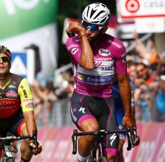 Gaviria, de 22 años y que disputa su primera gran ronda, ya había vencido en la tercera etapa de este Giro, con final en Cagliari (Cerdeña), y en la quinta, en Messina (Sicilia). "Hemos venido para ganar. Ahora en 'ciclamino' hasta Milán", dijo en la meta el velocista colombiano, en referencia al color de la 'maglia' que distingue al líder de la clasificación por puntos, en la que Gaviria cuenta con una cómoda ventaja sobre el belga Jasper Stuyven (253 puntos a 167). "¡Tres etapas en mi primera gran vuelta! No tengo palabras para expresar lo feliz que soy. Gracias a todos por el apoyo", publicó poco después en las redes sociales.