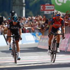 Quintana entró en solitario a 12 de segundos y aprovechó el mal día del líder, el holandés Tom Dumoulin (Sunweb), por un problema intestinal, para recortarle dos minutos y 10 segundos a la maglia rosa y colocarse a 31 segundos del liderato. «Un día muy positivo, con un gran trabajo de equipo. Sabíamos que podíamos recortar tiempo. El líder ha cedido, por unas razones u otras», declaró el colombiano al canal Rai Sport. «El ritmo era muy alto y con el kilometraje y el recorrido que traíamos cubierto, los cuerpos estaban muy cansados y a la vez muy igualados», añadió.