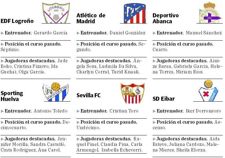 Se prevé una liga intensa y muy competitiva gracias al frenético mercado de fichajes de este verano. Los favoritos se mantienen: el Barcelona, sin apenas cambios; el Atlético Madrid, con una plantilla casi a estrenar y el Levante, reforzado con la llegada de Alba Redondo y Eva Navarro. Aunque, tal y cómo destaca el entrenador del EDF Logroño, Gerardo García León, «siempre puede haber sorpresas, como el Deportivo el año pasado», así como «el peligro de un Real Madrid que debutará con la mayor calidad posible».