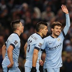 David Silva (d) celebra uno de sus goles.