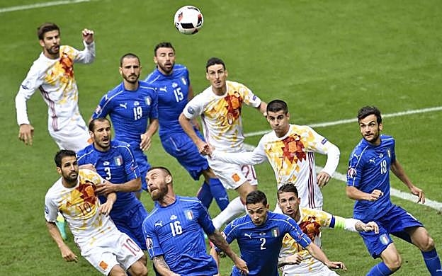 La gran España de Vicente del Bosque ya daba claros síntomas de agotamiento después de un Mundial de Brasil para el olvido en 2014, pues no pasó de la fase de grupos en su intento de defender el cetro del fútbol global. Pese a ello, la selección española logró la clasificación para la fase final de Francia con solvencia, con nueve victorias y sólo una derrota en Eslovaquia en toda la fase preliminar. El debut en el primer torneo de 24 selecciones fue prometedor, con dos victorias ante la República Checa y Turquía que dejaron buenas sensaciones por el resultado y también por el juego. Sin embargo, todo se torció frente a Croacia en Burdeos. Morata adelantó a España, Kalinic empató y Ramos tuvo el 2-1 que hubiera encarrilado el primer puesto de grupo con un penalti que acabó fallando. A tres minutos del final del tiempo reglamentario, Perisic le dio a los croatas un triunfo que acabó condenando a la selección española a un segundo puesto que la situó en el lado difícil del cuadro eliminatorio, con Italia como rival en octavos. La 'Azzurra', dirigida por Antonio Conte, pasó por encima del equipo de Vicente del Bosque en un partido que concluyó 2-0 a favor de los transalpinos pero que bien pudo haber terminado con una goleada y que supuso el adiós del seleccionador español durante ocho años.