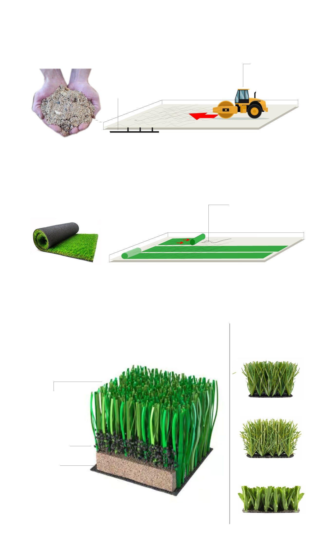 Una vez colocado y sellado, se le añade con máquinas caucho o fibra de coco y arena de sílice para fijarlo mejor y mejorar sus características