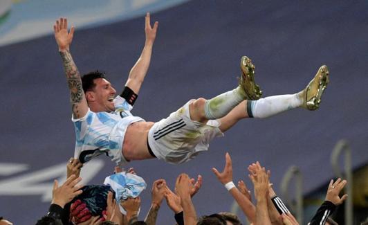 Aunque no brilló en el templo carioca, Messi voló por el aire de Río empujado por la fuerza de sus compañeros, que se rindieron ante su 10 y capitán. «¡Messi, Messi, Messi!», le homenajearon los miles de argentinos que asistieron al Maracaná tras aprobarse a última hora la entrada limitada de público. Entre serpentinas y pirotecnia, 'La Pulga' levantó la copa en el torneo en el que posiblemente ha tenido su mejor rendimiento, mientras negocia su renovación con el Barcelona.