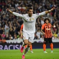 El que no frenaba su ambición, esa que le hizo solicitar ese penalti inexistente como un poseso, era Cristiano, que rozó el 3-0 en un golpe franco. Decían sus compañeros que ya sólo le falta anotar a balón parado para recuperar del todo la confianza después del repóker en Cornellá. Siguió aumentando sus cifras, lleva ocho goles en cuatro días, aprovechando que Azevedo cometió una mano entre infantil e instintiva dentro del área. Después, cuando Lucescu temía que una goleada le fuese a complicar el resto de la clasificación en el grupo el portugués completó su hat-trick aprovechando un despeje centrado de Pyatov a zurdazo de Marcelo, omnipresente en ataque ante la ausencia de rival en su banda para defender.