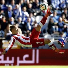El francés anotó los dos goles Atléticos en un partido en el que fue expulsado Simeone