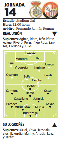 La Sociedad tendrá que luchar contra el Real Unión, contra los números de los guipuzcoanos en casa y también contra los propios como visitantes. No en vano, los de García solo han sumado tres puntos lejos de Las Gaunas, merced a la victoria en septiembre en la Nova Creu Alta. Nada más. El resto de sus enfrentamientos se cuentan por derrotas. Es cierto que en partidos como el de Fuenlabrada se quedó cerca no solo de puntuar sino de ganar, pero también lo es que en otros, como el del Arenteiro o el Deportivo, el triunfo se vio como algo lejano.