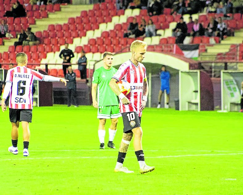 Y cuando todo parecía perdido, en el tiempo añadido, un barullo dentro del área visitante termina en mano de la defensa y penalti a favor de la SD Logroñés. Sergio Gil asumió la responsabilidad. Su disparo raso y ajustado al palo derecho de Oier besó al red y recompensó, en parte, el esfuerzo de los locales. Empate y fin de partido.