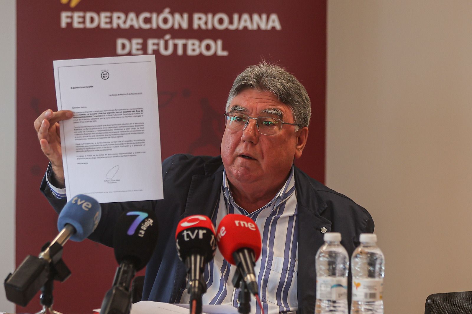 El todavía presidente en funciones de la Federación Riojana de Fútbol, Jacinto Alonso, ha ofrecido esta mañana una rueda de prensa en la sede federativa ... en la que ha dejado claro clara su postura que se resume en una frase: está al margen del proceso electoral. No quiere tener nada que ver. Entre cosas, Alonso aprovechó la que ha podido ser su última comparecencia como presidente de la FRF para desmentir las acusaciones de favorecer al candidato Jesús Alonso en su campaña, al que ha tenido durante 17 años como vicepresidente, según indicó.