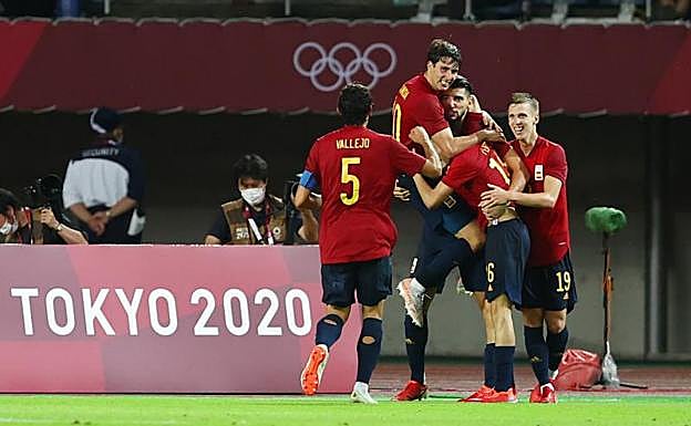 Mucho más cerca de una medalla está su primo Rafa, que ayer entró de lleno en la historia del fútbol olímpico, con un triplete saliendo desde el banquillo que nadie había conseguido anteriormente. Alimentó además el debate sobre la necesidad de que la selección de Luis de la Fuente juegue con un '9' de referencia. El técnico riojano no tiró del cartagenero hasta el minuto 90, cuando Costa de Marfil anotó el 2-1 y el equipo español estaba eliminado. «Cuando vi que nos marcaban fui directo al banquillo sin que me llamaran», confesó Rafa Mir al acabar el choque.
