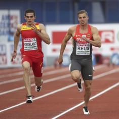 Bruno Hortelano (izq), durante la prueba de los 100 metros masculinos en Holanda.
