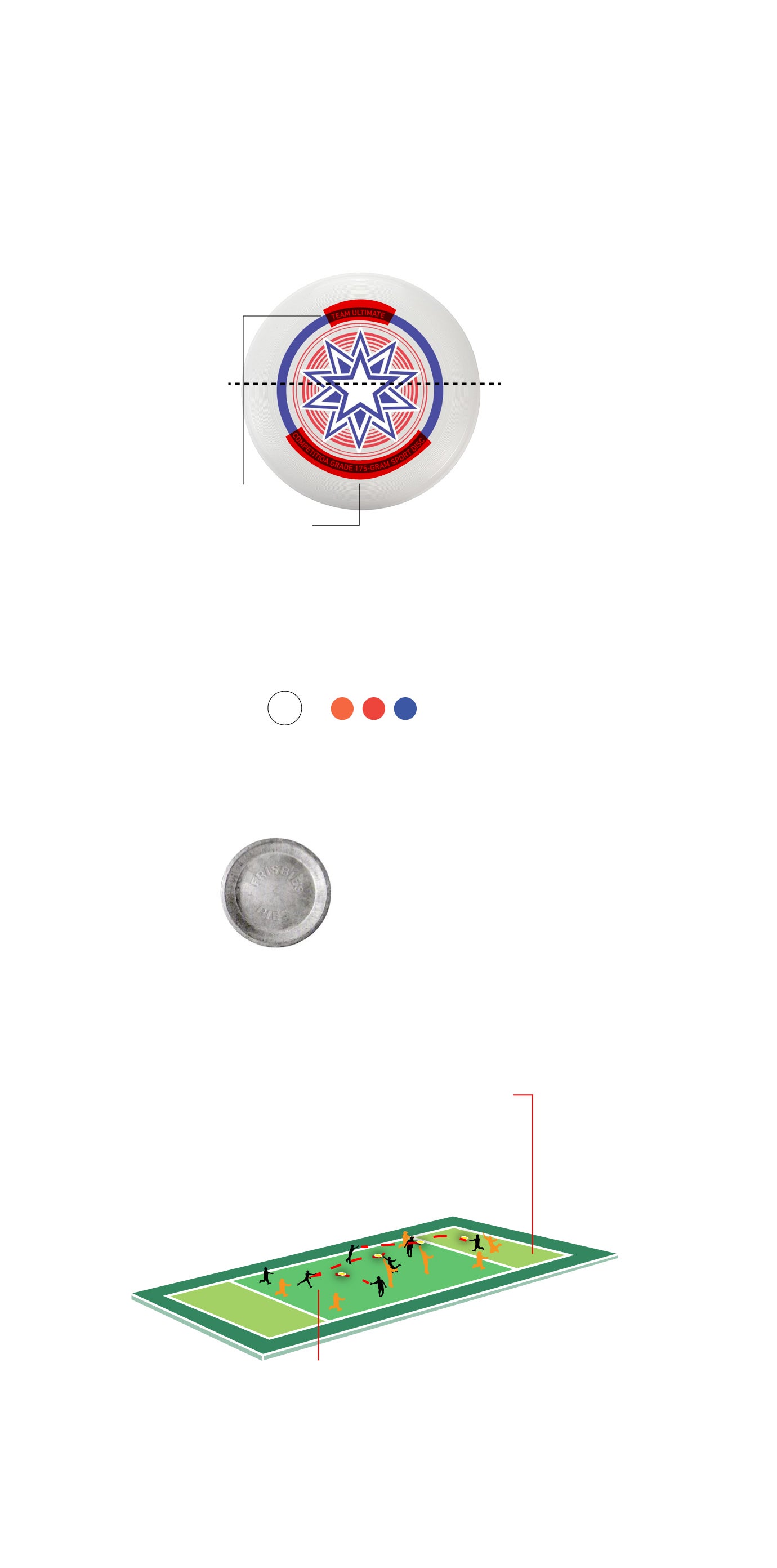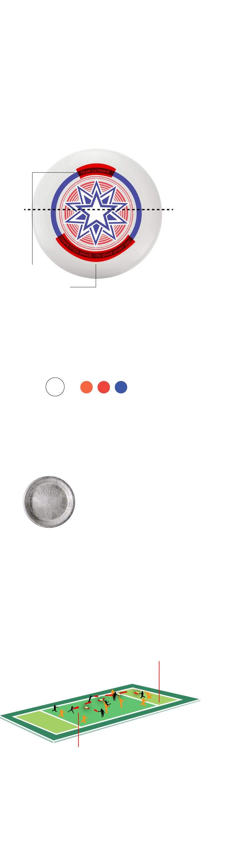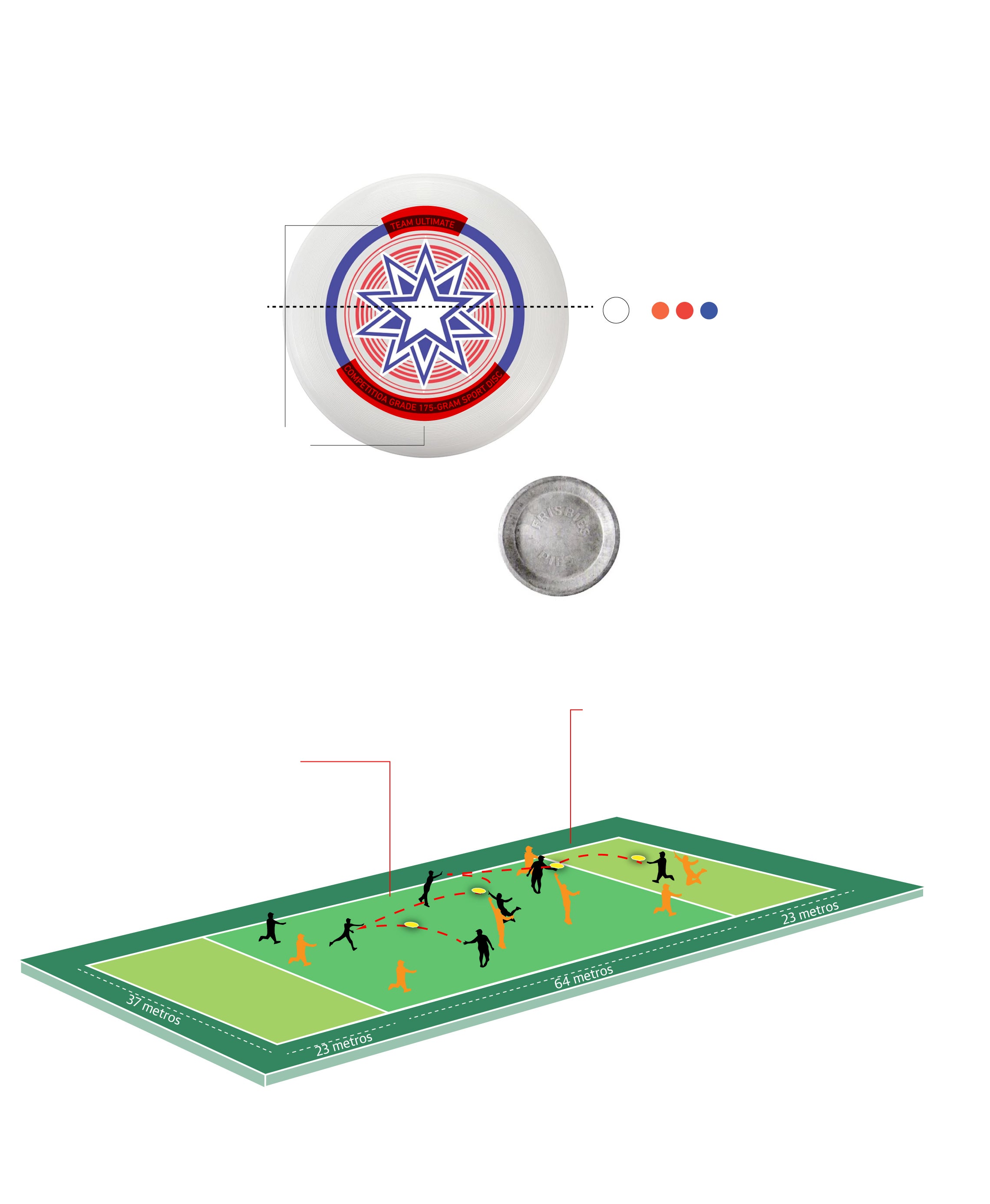 Las dimensiones del campo son de 100 metros de largo por 37 de ancho, con zonas de anotación en los extremos, similares al rugby o al fútbol americano. Para marcar un punto, un jugador debe recibir el disco en la zona de gol del equipo contrario. Los partidos, en el caso del Mundial, se juegan hasta 15 puntos o durante un máximo de 100 minutos. «Si se termina el tiempo y aún no se ha llegado a esa puntuación, se aplica el llamado 'cap': se juega hasta que uno de los equipos llegue a uno o dos puntos más del líder en ese momento, así que no puede haber empates», detalla.