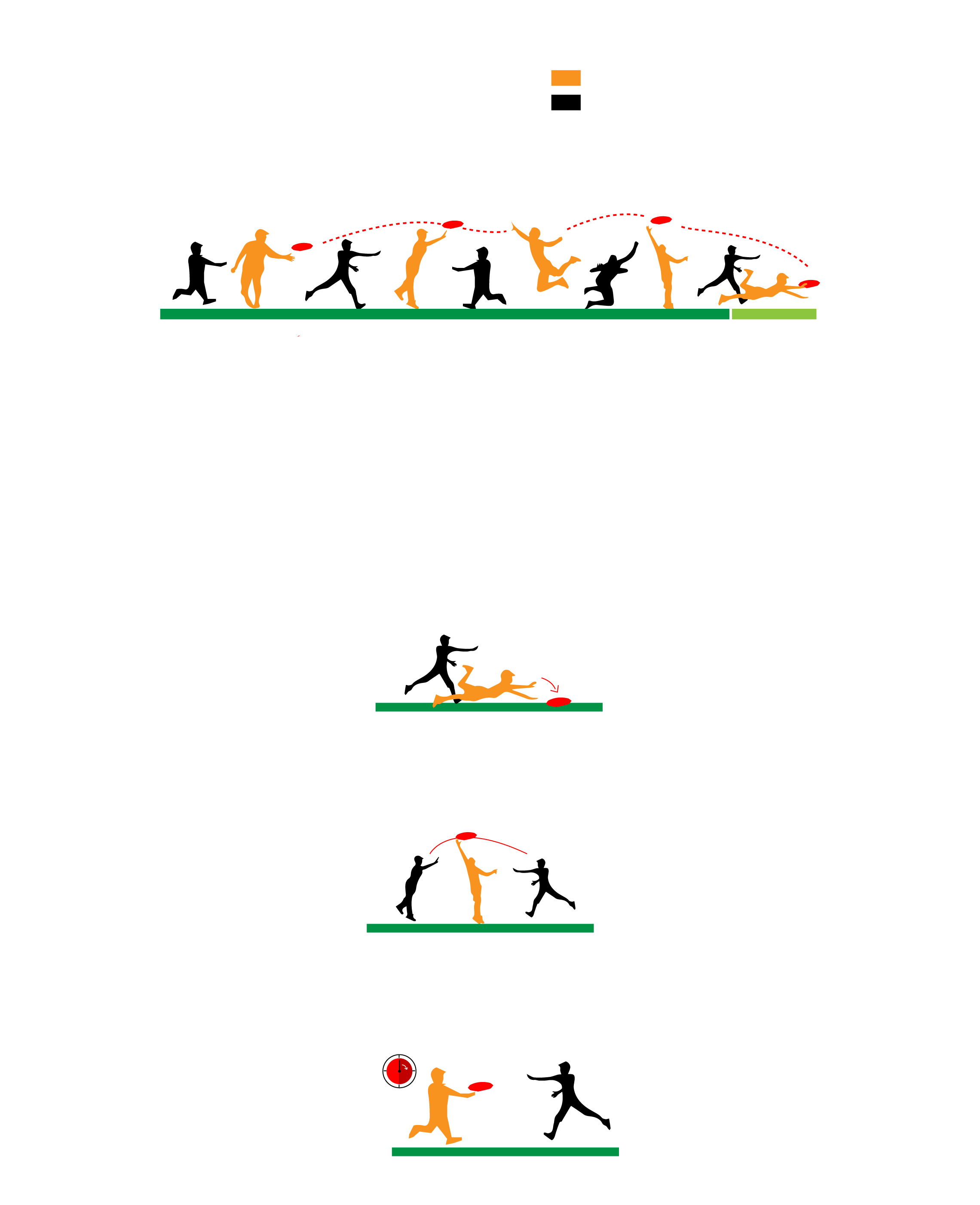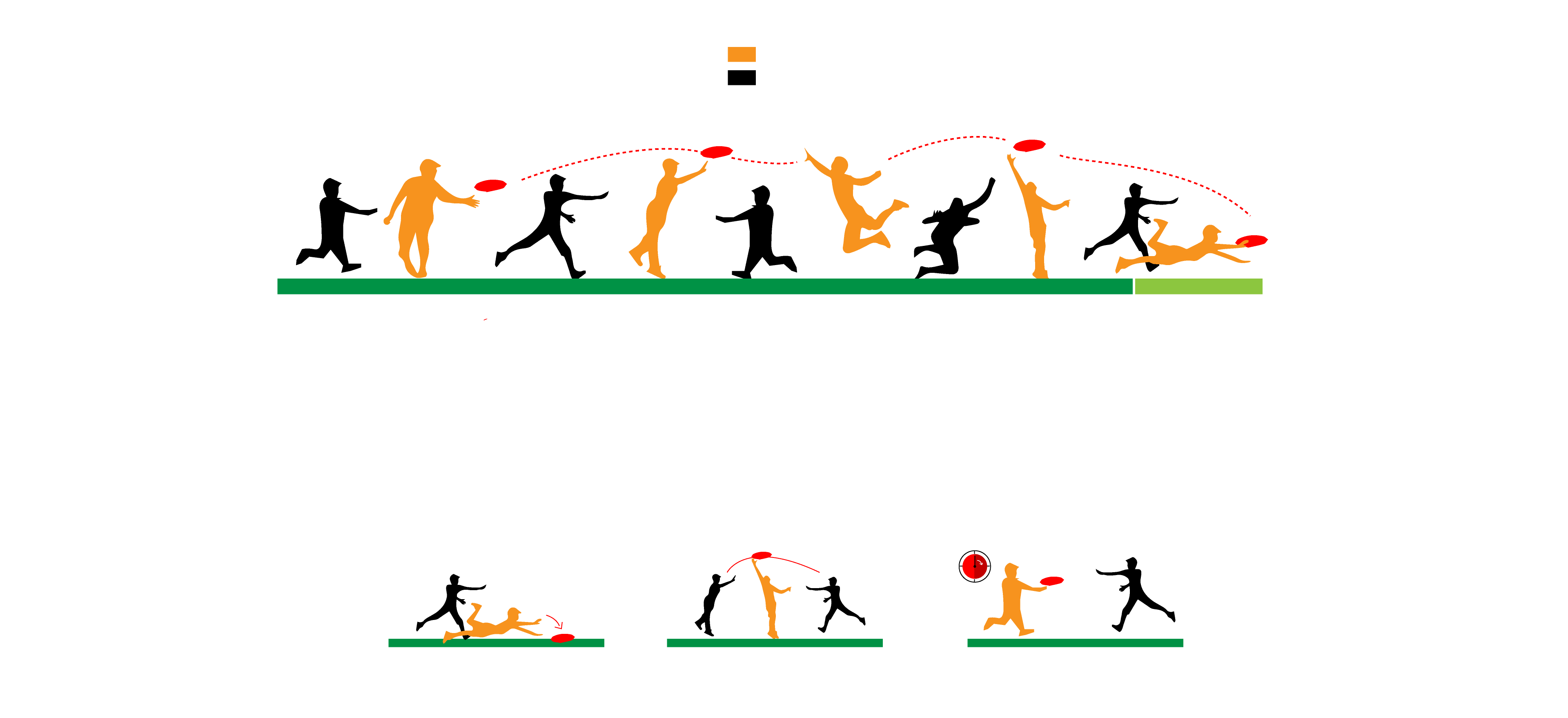 Al inicio de la jugada se decide quién sera atacante (lanzador del frisbee) y quien defensor (obstaculizador de la jugada).