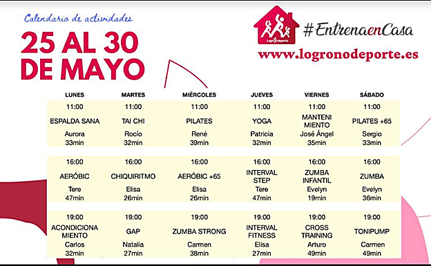 Desde el organismo, apuntan que ésta no será la última cita de los domingos. El día 31, «como colofón del programa, se despedirán todos los monitores que durante los dos meses de confinamiento han procurado que los logroñeses nos mantengamos activos».