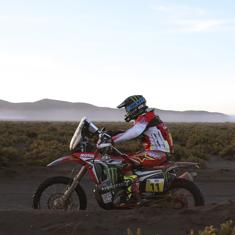 La caravana del Dakar empezó a replantearse soluciones, como la de montar el campamento en Tilcara, a unos 200 kilómetros de Salta. Mientras se decidían y no, un hombre quiso pescar en río revuelto: Joan Barreda. El valenciano arrancaba la jornada con una hora y diez minutos de retraso en la general sobre el líder Sam Sunderland. Lo tiene muy complicado, y sólo una épica remontada, de las más grandes que se daría en la historia del Dakar americano y africano, le permitiría alzarse con el ansiado trofeo Touareg.