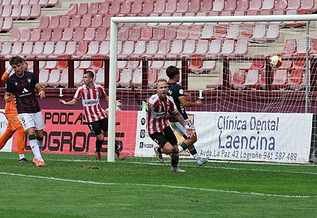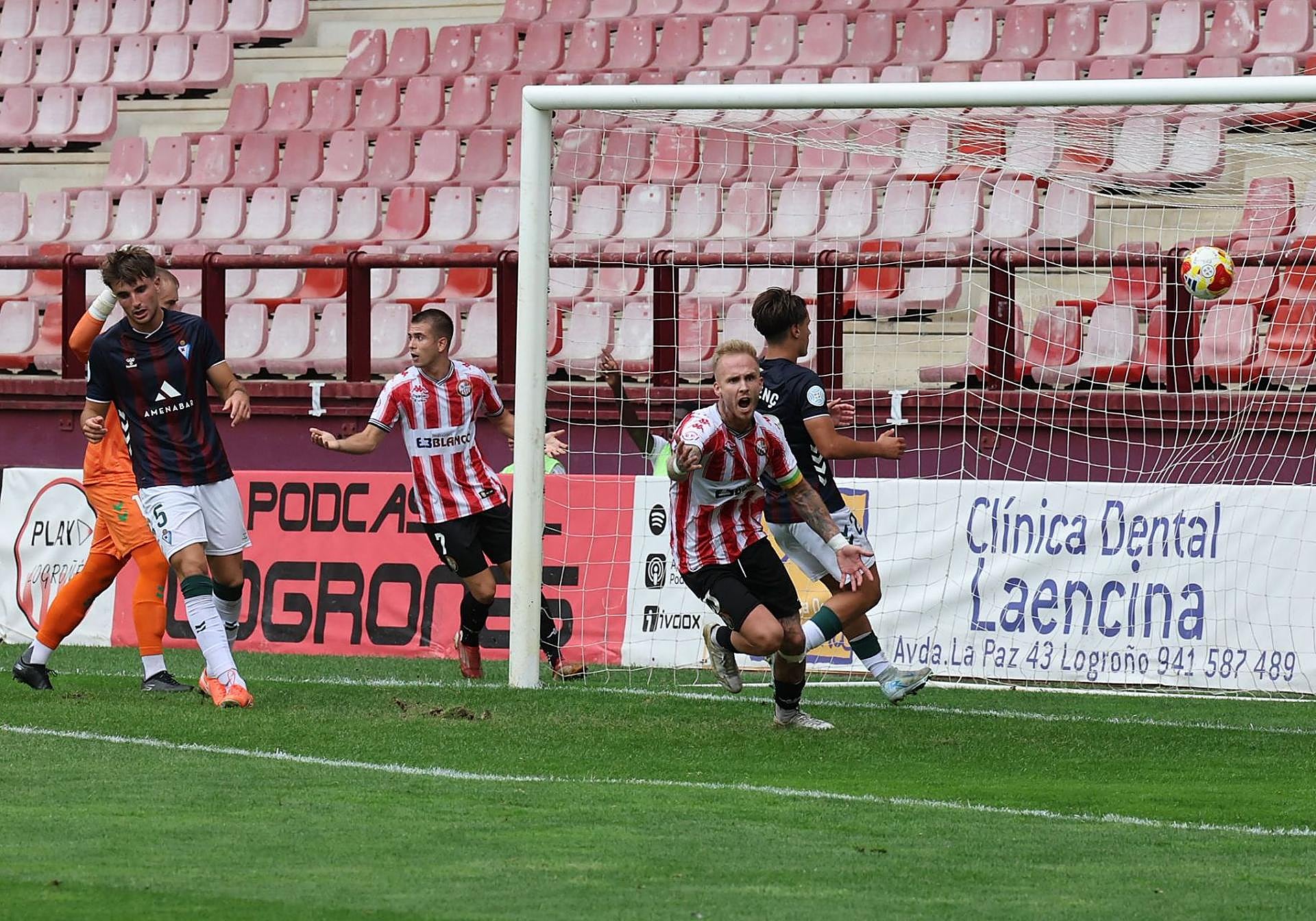 Un fútbol físico, con mucha presión alta, con transiciones rápidas y pegada. En su estreno, la Sociedad Deportiva Logroñés encandiló a su afición. Los de Adrián Cantabrana ganaron 2-0 a un desdibujado Eibar B, aunque los blanquirrojos pudieron golear al filial armero. Solo la falta de puntería evitó que la cifra no se mucho más amplia.