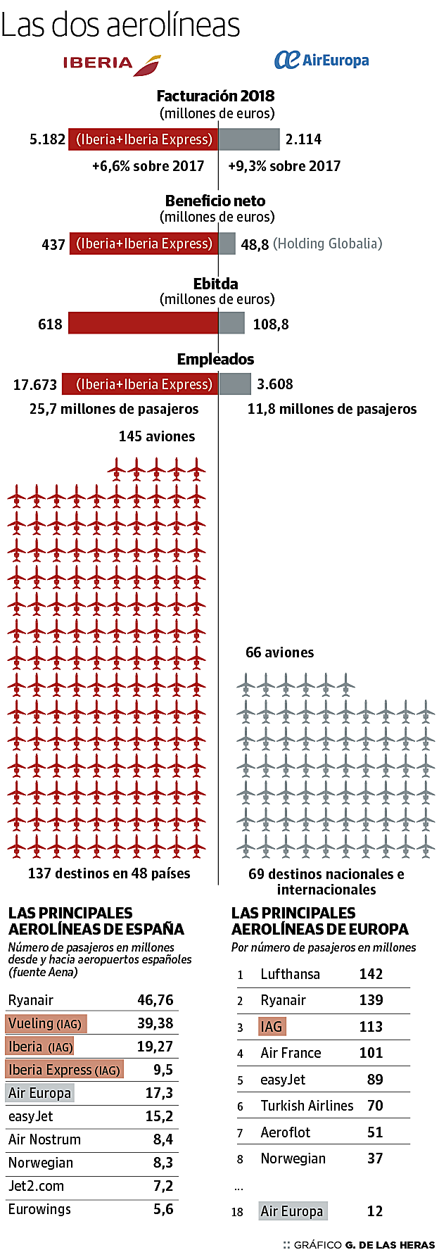 La operación cuenta con el respaldo de los inversores, a la vista de que las acciones de IAG llegaron a subir hasta un 2%, colocándose en máximos de los últimos ocho meses. No en vano, tras la compra, el grupo Iberia (integrado por Iberia, Iberia Express y Air Nostrum) desbancará a Ryanair y se convertirá en la principal aerolínea española por número de pasajeros al sumar casi 54,5 millones de viajeros frente a los 46,7 millones de la compañía irlandesa, según datos de AENA.