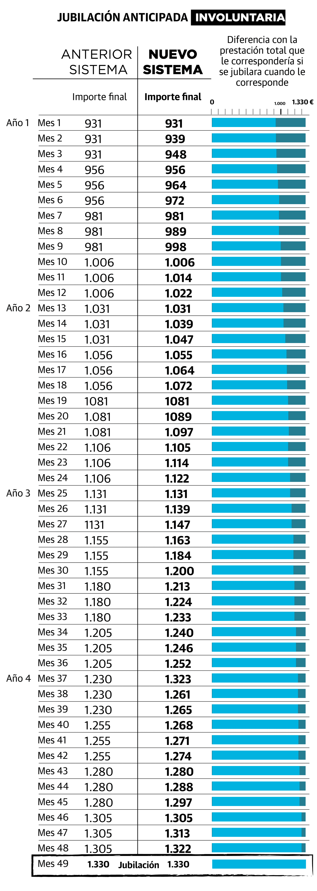 Las nuevas tablas de las penalizaciones que sufrirá este colectivo revelan que el sistema será más generoso con quien se jubile anticipadamente por encontrarse sin trabajo en los años previos a la jubilación.