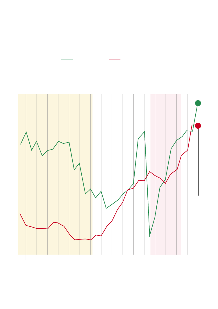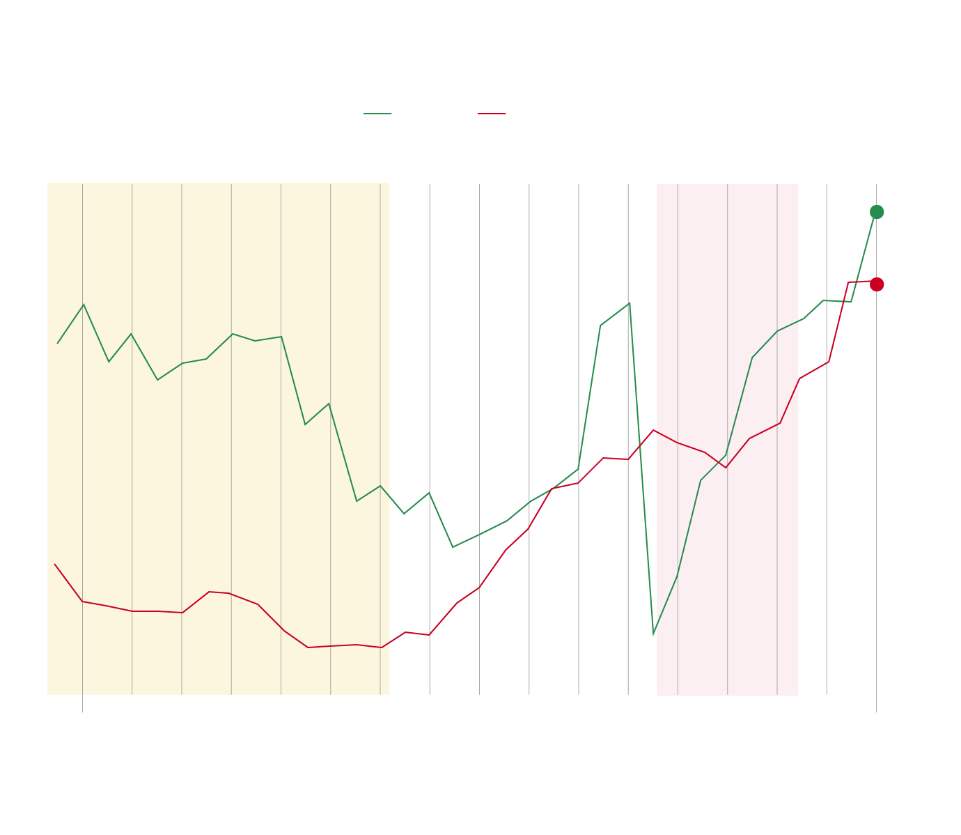 La situación se repite entre los jóvenes de entre 16 y 29 años. Mientras la media en España se sitúa en el 15,2% anteriormente mencionado (es decir, apenas 15 personas de cada cien residen fuera de casa de sus padres), en Europa se duplica la cifra al 30% (30 de cada cien). Además, la brecha es cada vez mayor -en casi 11 puntos- respecto a las cifras que registraban las generaciones de jóvenes antes de la crisis de 2008, cuando un cuarto se independizaba antes de los 30. Y cerca de 3,5 puntos por debajo del nivel prepandemia.