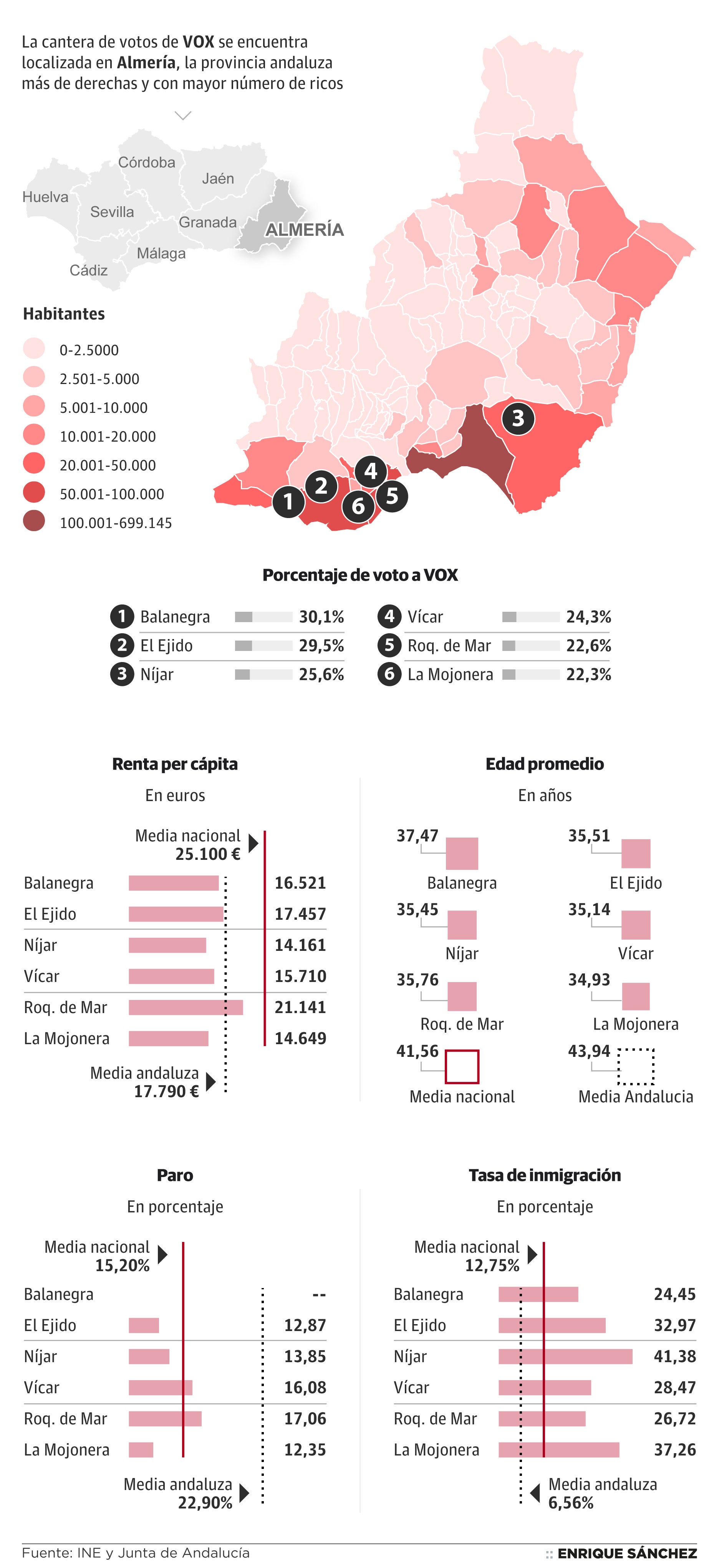 Paro, inmigración, media de edad, PIB... Así son los habitantes de Balanegra, El Ejido, Níjar, Vícar, Roquetas de Mar y La Mojonera