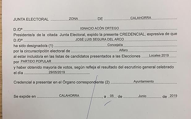 La composición del pleno del Ayuntamiento de Alfaro ha cambiado incluso antes de ser efectiva. La lista del Partido Popular de la localidad ha sufrido una variante, de manera que José Luis Segura terminará siendo concejal, como lo ha sido durante los últimos años, pero en la oposición.